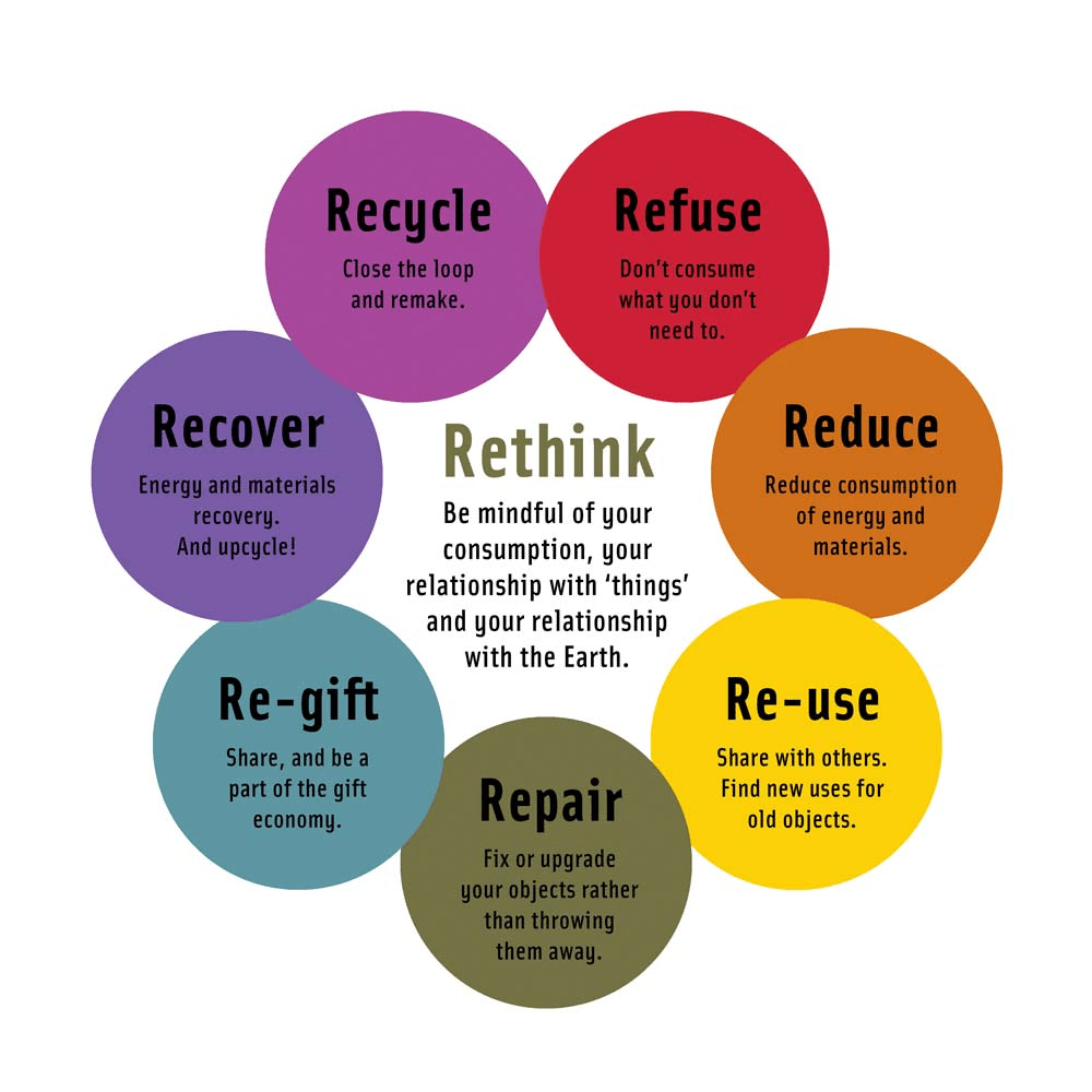 Last month I wrote some ideas about saving water and energy. This month, have a look at the graphic below – the 8 ‘R’s – and consider how you could use these ideas. Perhaps there are things you have ‘re-purposed’ (there’s another ‘R’!) that you’d like to tell others about?